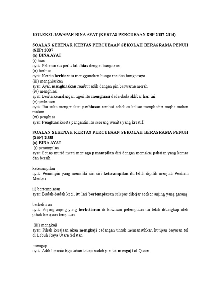 Bina Ayat Menggunakan Perkataan Atau Tingkatan 3
